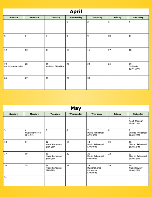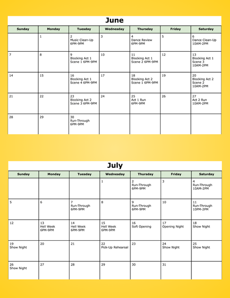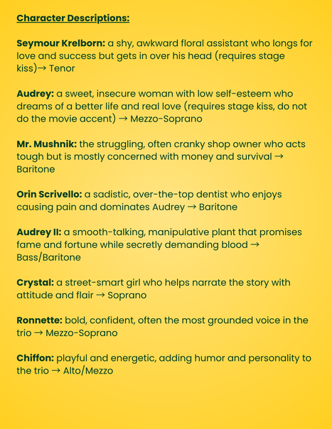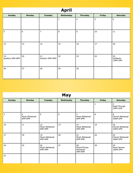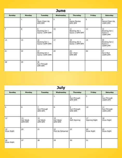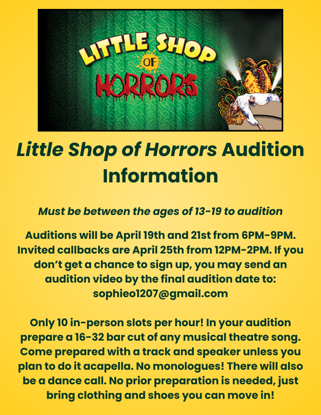 Little Shop Rehearsal Schedule Below: