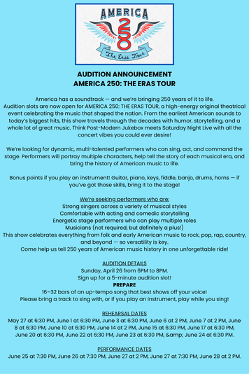 We also have opportunities throughout the year backstage, onstage, and on our show production teams!